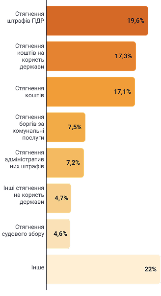 Єдиний реєстр боржників - в цьому реєстрі є відомості про прострочені аліменти, не сплачені вчасно штрафи, не сплачені вчасно кредити та податки, боржники державі, стягнення коштів, конфіскація майна, виселення тощо.